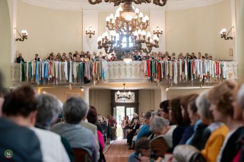 A délután kiemelkedő mozzanata volt a domokosi és egri nőszövetségi zászlók ünnepélyes felavatása, amely méltó jelképe lett a közösségek összetartozásának és elkötelezett szolgálatának. Az alkalom során sor került az emléklapok átadására is, amelyeket Ghitea Szabó József Levente lelkipásztor, missziói előadótanácsos nyújtott át a nőszövetségi vezetőknek hálás elismerésként a szolgálatukért.