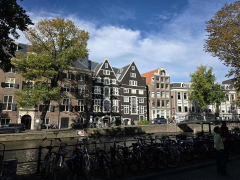 A „kis Velence” néven is emlegetett holland főváros a régmúlt értékeit hordozó színes házaival, csatornáival és hídjaival a meséskönyvek világát csillantják fel. A világ minden tájáról ide érkezett lakosság már szinte csak felerészben holland, hiszen ez az ország mindig nyitott és befogadó volt a vendégmunkások előtt. A sok biciklis látványa számunkra szokatlan, ahogyan a nagy forgalom is és a rengeteg ember. Gyalog vettük a nyakunkba a várost, hogy még többet láthassunk. A sok bezárt vagy épp felújítás alatt lévő templom csalódással töltött el, de kárpótolt valamelyest a „Rijks Museum” – ahová hosszú sorban igyekeznek bejutni a turisták. A többszintes épület hatalmas kincsestárából egy emeletet sikerült bejárnunk, ahol Rembrandt, Van Gogh és Monet valamint a flamand festőiskola számos képviselőjének munkáit csodálhattuk meg.