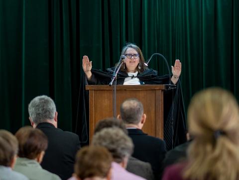 Az ünnepi igehirdetés szolgálatát Katona Viktória, lelkipásztor végezte, a Máté 21,1-11-ből, a virágvasárnapi történet alapján tolmácsolta Isten üzenetét a gyülekezet számára. Igehirdetésében Jézus Krisztus Jeruzsálembe való bevonulás-történetének végén felhangzó kérdésből indult ki. „Amint Jézus bevonult Jeruzsálembe, felbolydult az egész város, és ezt kérdezgették: Kicsoda ez?” Ez pedig nem csak ott s akkor Jeruzsálemben volt kérdés, hanem itt és most is: kicsoda neked az a Jézus Krisztus, aki nem csak Jeruzsálembe, hanem a te életedbe akar bevonulni. „Mennyire jó úgy élni, hogy az ember hiszi és vallja, hogy az, Aki akkor és ott értünk megtette, hogy keresztre ment, meghalt és feltámadt, az a Jézus Krisztus ma, 2026. március 29-én ugyanolyan élő Úr itt Szilágycsehben, s minden egyes otthonba be akar látogatni, ott akar maradni. Ne hagyjátok itt Jézust, vigyétek magatokkal, és mondjátok el, nektek mit jelent az, hogy van kihez fordulnotok életetek minden idejében.”