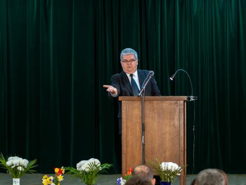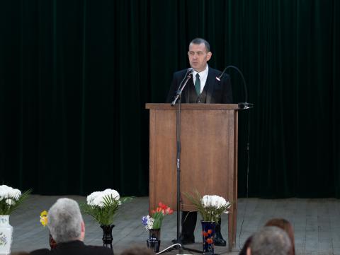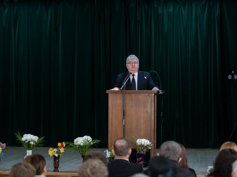 Dr. Czibere Károly, a MRSZA kuratóriumi elnöke köszöntő beszédében elmondta: „A torony évszázadok óta felkiáltójel volt, és mindig bizonyságtétel volt. Mindig arra mutatott, hogy nekünk megtartó és győzedelmes Urunk van. S amikor ez omlik össze, ez olyan, mint amikor nekünk a bizonyságtétel omlik össze. Amikor, kiszállva a kocsiból, megláttam a leomlott torony köveit, szívem mélyén rendültem meg. S mindenki a Kárpát-medencében szívében rendült meg, látva a képeket. A torony, mint a mi hitünk jelképe, a magyar református megmaradásunknak szimbóluma, amikor összeomlik, feltevődik bennünk a kérdés: Mit akarsz ezzel üzenni, Urunk? Azt akarja üzenni, hogy a bizonyságtételnek ez a jele lehet, hogy összeomlik, de akkor neked kell átvenned a helyét. A torony bizonyságtétel a gondoskodó Úrról, aki az Ő Fiát nem kímélte, hanem érettünk keresztre adta. Neked kell bizonyságot tenni, neked kell az égre mutatni, ahogy ez a torony tette. … A legnagyobb nehézségek között is csak az Úrba kapaszkodhatunk, a legnagyobb veszedelmek között sem hagy el bennünket.”
