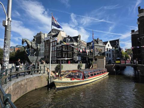 A „kis Velence” néven is emlegetett holland főváros a régmúlt értékeit hordozó színes házaival, csatornáival és hídjaival a meséskönyvek világát csillantják fel. A világ minden tájáról ide érkezett lakosság már szinte csak felerészben holland, hiszen ez az ország mindig nyitott és befogadó volt a vendégmunkások előtt. A sok biciklis látványa számunkra szokatlan, ahogyan a nagy forgalom is és a rengeteg ember. Gyalog vettük a nyakunkba a várost, hogy még többet láthassunk. A sok bezárt vagy épp felújítás alatt lévő templom csalódással töltött el, de kárpótolt valamelyest a „Rijks Museum” – ahová hosszú sorban igyekeznek bejutni a turisták. A többszintes épület hatalmas kincsestárából egy emeletet sikerült bejárnunk, ahol Rembrandt, Van Gogh és Monet valamint a flamand festőiskola számos képviselőjének munkáit csodálhattuk meg.