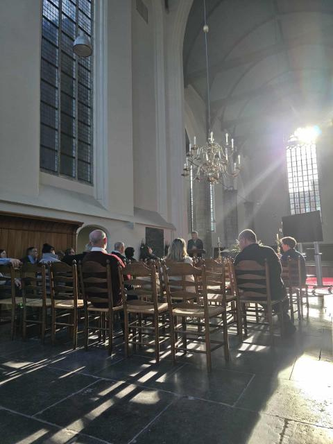 Vasárnap délelőtt Hilversumban, a Betlehemkerk-ben tartott istentiszteleten vettünk részt, ahol az alapige A gazdag és Lázár története volt (Lk 16, 19-31). Oane Reitsma, a konferencia házigazda lelkipásztora valamint Arjan Wilschut lelkipásztor igei szolgálata mellett nagyon sok zene, a történetet dramatizáló szóló-valamint kórusének, orgonaimprovizációk és liturgikus tánc gazdagította az alkalmat. A mintegy kétórás istentiszteleten a gyülekezet három nyelven énekelte a zsoltárokat.