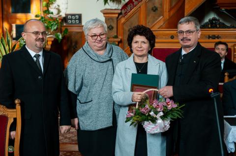 A hitoktatók nevelői munkáját méltatva Szűcs Éva katekétikai szakelőadó adta át az M. Nagy Ottó díjat, amelyet idén a szatmárhegyi vallástanár, Hankovszky Éva vehetett át.