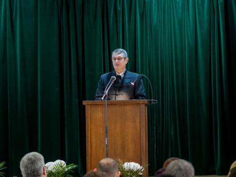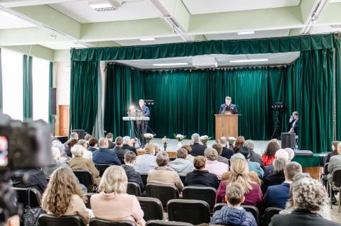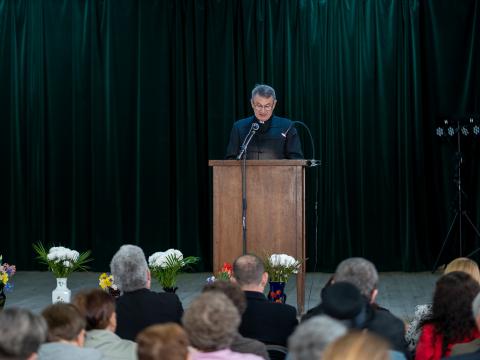 Dr. Czibere Károly, a MRSZA kuratóriumi elnöke köszöntő beszédében elmondta: „A torony évszázadok óta felkiáltójel volt, és mindig bizonyságtétel volt. Mindig arra mutatott, hogy nekünk megtartó és győzedelmes Urunk van. S amikor ez omlik össze, ez olyan, mint amikor nekünk a bizonyságtétel omlik össze. Amikor, kiszállva a kocsiból, megláttam a leomlott torony köveit, szívem mélyén rendültem meg. S mindenki a Kárpát-medencében szívében rendült meg, látva a képeket. A torony, mint a mi hitünk jelképe, a magyar református megmaradásunknak szimbóluma, amikor összeomlik, feltevődik bennünk a kérdés: Mit akarsz ezzel üzenni, Urunk? Azt akarja üzenni, hogy a bizonyságtételnek ez a jele lehet, hogy összeomlik, de akkor neked kell átvenned a helyét. A torony bizonyságtétel a gondoskodó Úrról, aki az Ő Fiát nem kímélte, hanem érettünk keresztre adta. Neked kell bizonyságot tenni, neked kell az égre mutatni, ahogy ez a torony tette. … A legnagyobb nehézségek között is csak az Úrba kapaszkodhatunk, a legnagyobb veszedelmek között sem hagy el bennünket.”